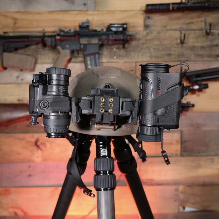 The Nocpix Lumi Series Helmet Mount Adaptor was made to hold any Lumi series thermal on a bridge. This is a desirable outcome because building a Dual Band System, (one thermal paired with Night Vision) is in fact peak male performance. Buy with confidence you will be more efficient hands free. If you don’t have the Lumi Series thermal yet we can get that for you too!